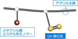 ◆ウレタン変性アクリルポリマー『8UAシリーズ』を開発 特徴 アクリルポリマー主鎖にウレタン樹脂をグラフトさせることにより、アクリル樹脂の特性である硬度、耐候性とウレタン樹脂の特性である強靭性、 密着性、耐摩擦性と双方の樹脂特性を有して、PET,ABS,PC等、各種プラスチック基材への密着性を発揮します。